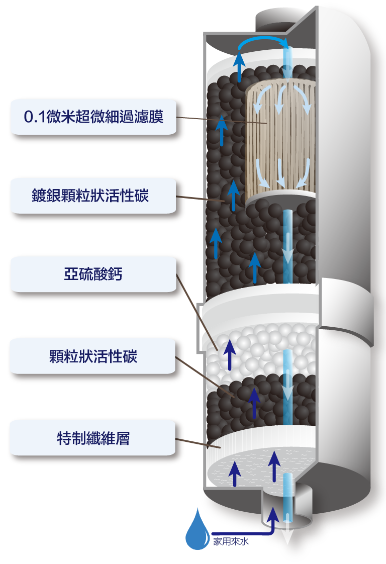 過濾0.1微米或以上的物質包括病菌,囊腫等。